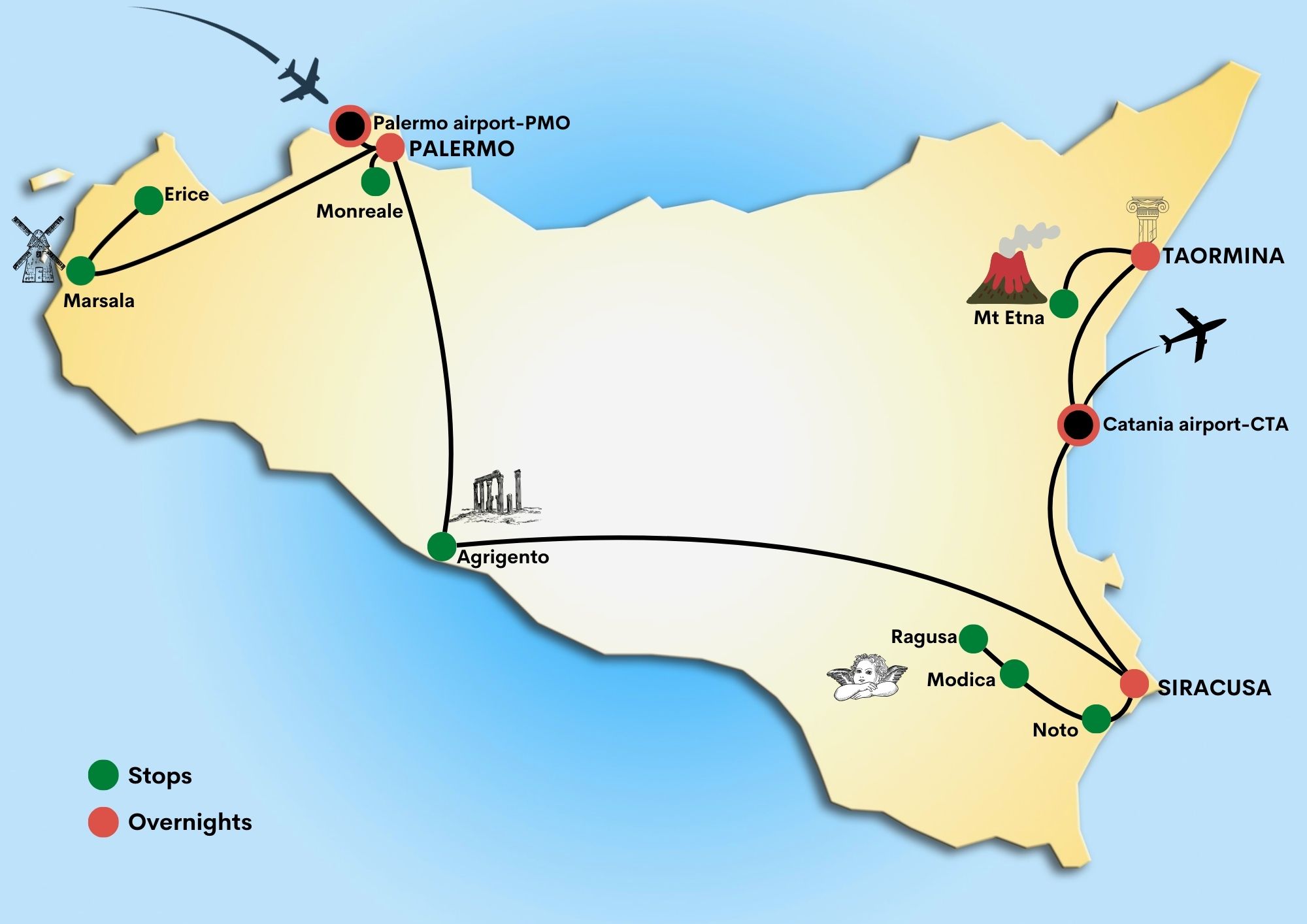 Palermo (3 nights) Siracusa (2 nights) Taormina (3 nights)